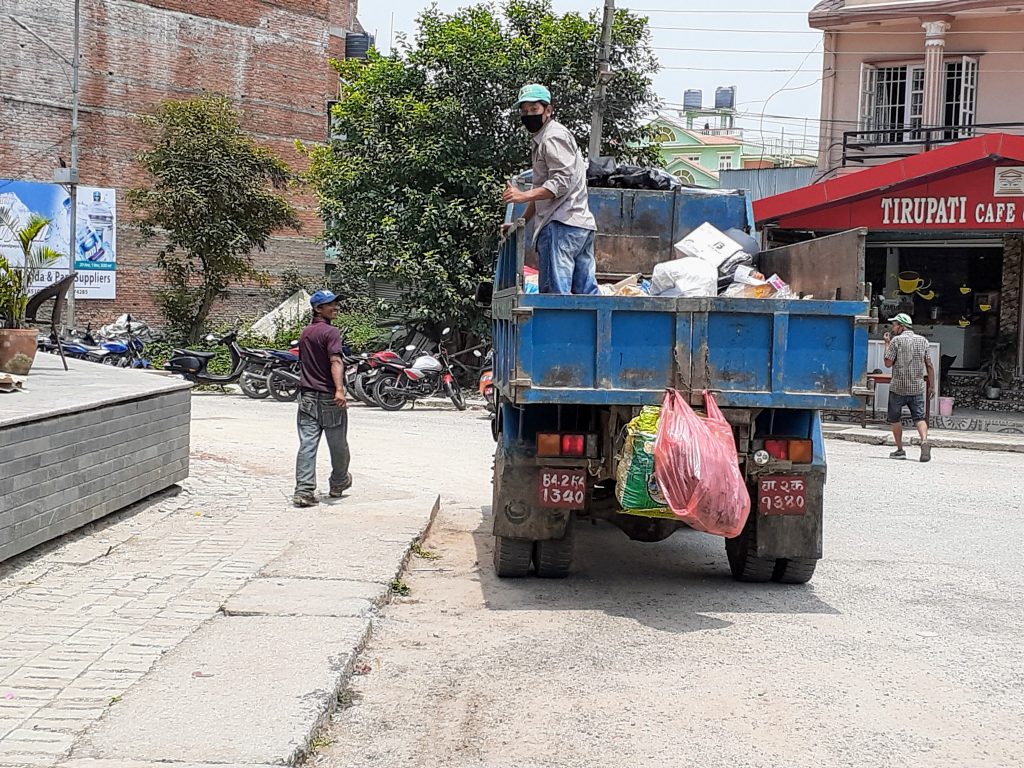現在、ネパールの首都カトマンズでは、地域ごとに定められたゴミの収集日にゴミ処理回収車が巡回するようになっています。