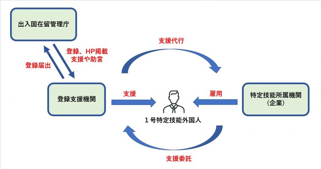 登録支援機関は、前述のとおり、特定技能所属機関(特定技能外国人を受け入れる企業)の代わりに特定技能外国人の支援を行います。