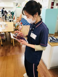 「たとえば、備品の在庫数や、その日のご利用者さまの人数や出勤したスタッフの名前などをパソコン上の業務日誌に入力するといった業務にも取り組んでもらいました。